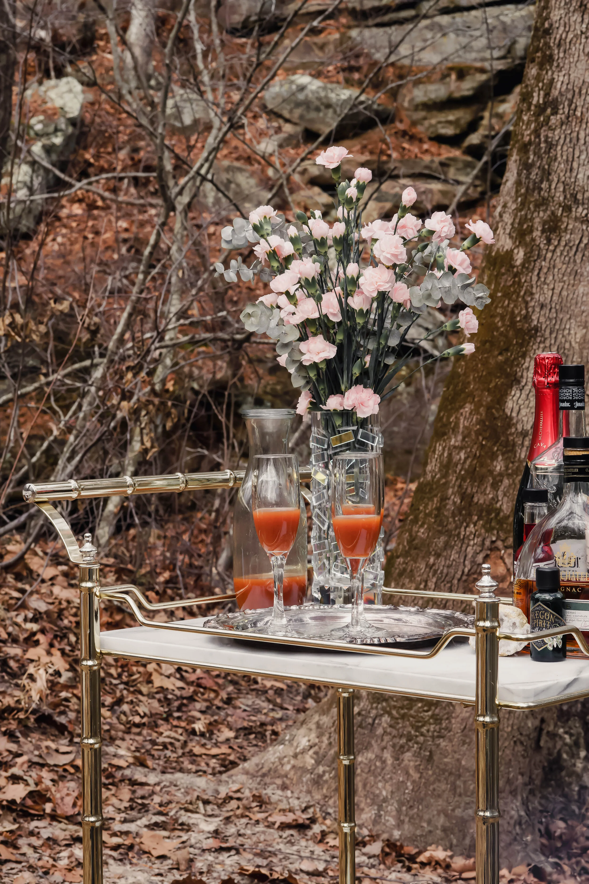 This cocktail is the perfect addition to a brunch spread. Bonus points if it’s enjoyed while sitting outside next to a campfire and antique bar cart, of course. In all seriousness, though, this cocktail is the perfect excuse to escape from the business of everyday life. Whether you are in the woods or your kitchen, I invite you to gather a few friends and enjoy a cocktail before 5 o’clock!